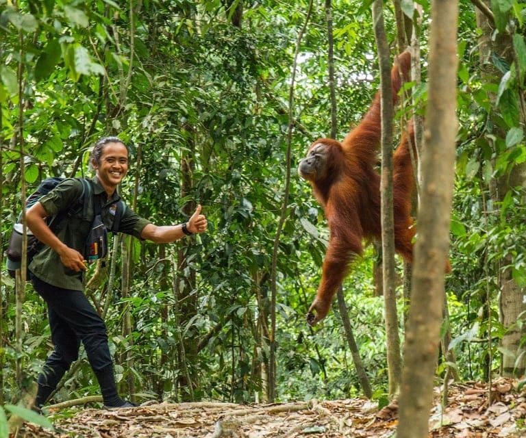 Explore ethical jungle trekking and tours to see Sumatran orangutans in their habitat.